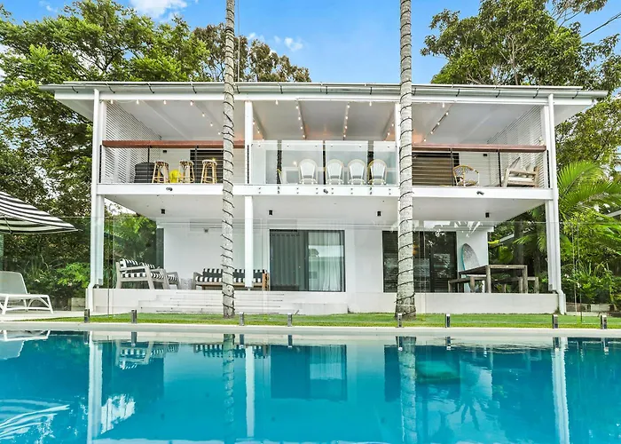 La Villa Coastal Luxe Little Cove Noosa, situada a 20 minutos a pie del Parque Nacional de Noosa, cuenta con una terraza con vistas al jardín. Los huéspedes pueden relajarse en la piscina privada y disfrutar de la proximidad a la Playa Principal de Noosa, que está a unos 500 metros.